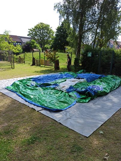 Bitte beachten: Die Hüpfburg hat ein Gesamtgewicht von 140 kg. Zum Auf- und Abladen werden mindestens vier Personen benötigt.